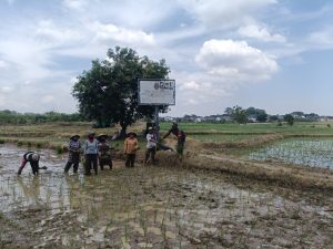 Babinsa Kelurahan Kalijaga Koramil 1402/Harjamukti, Serka Nursupriyanto, melaksanakan pendampingan kegiatan tanam padi yang ke-3 bertempat di lahan sawah milik Poktan Sidemung RW 06 Kedungmenjangan, Kelurahan Kalijaga, Kecamatan Harjamukti, Kota Cirebon.