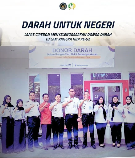 Cirebon Kota, bidikkriminalnews.co.id, – Lembaga Pemasyarakatan (Lapas) Kelas I Cirebon menggelar kegiatan donor darah bertajuk “Darah untuk Negeri” dalam rangka memperingati Hari Bakti Pemasyarakatan (HBP) ke-62, Senin (13/4/2026).