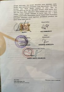 dengan dibuatkan Akta Hibah, yang isinya tidak benar atau palsu seolah-olah isinya asli, dengan ditanda tangani perangkat desa dan tanda tangan kepala desa berikut cap setempel basah desa setempat, agar tampak asli dan digunakan untuk tujuan dijaminkan ke pihak yang telah di rugikan dengan menggunakan dokumen yang isinya tidak benar atau palsu seolah-olah isinya asli, ( 8/10/2025).