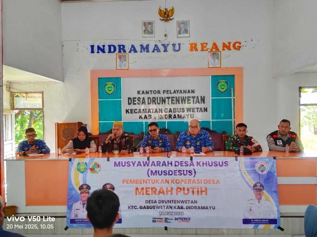 Indramayu, bidikkriminalnews.co.id –Pemerintah Desa Drunten Wetan Kecamatan Gabuswetan Kabupaten Indramayu Jawabarat menggelar acara Musyawarah Desa Khusus ( MUSDESUS) untuk membentuk Koprasi Merah Putih secara terbuka dengan bertujuan meningkatkan perekonomian masyarakat yang bertarap nasional.
